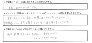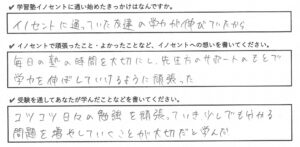 学習塾イノセントで頑張ったこと、よかったこと、受験を通して学んだこと