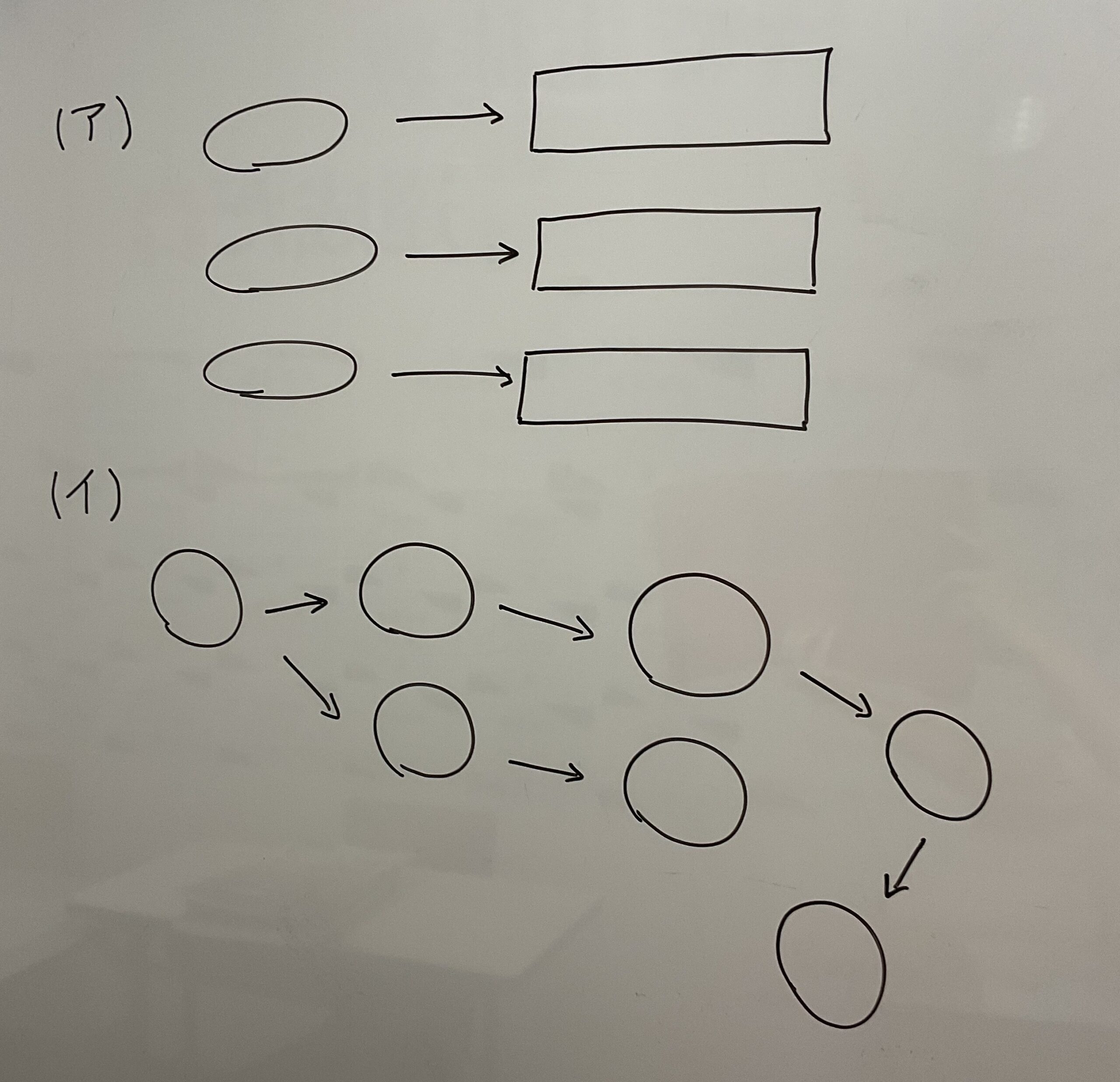 (ア)それぞれの知識と問題を一問一答で覚えている頭の中(問題-知識,問題-知識)