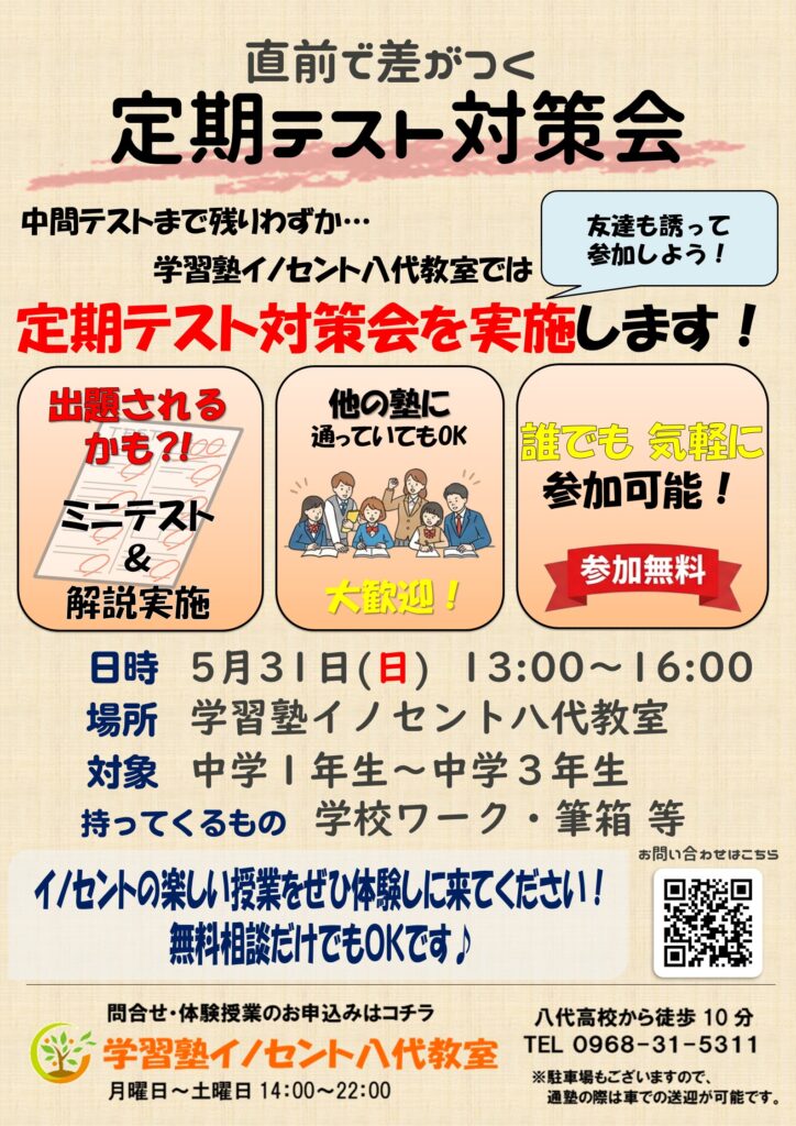🎉定期テスト対策会を実施します
