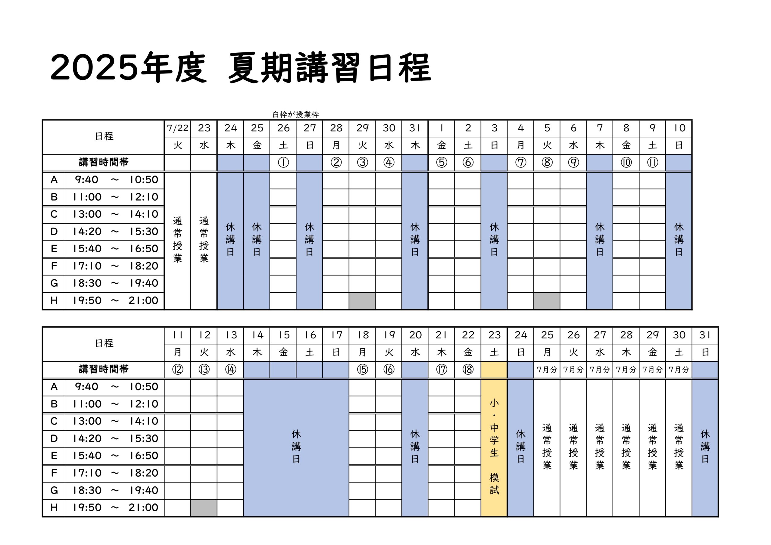 無料体験・夏期講習のお申し込みの締め切りは7月12日(土)となっています。