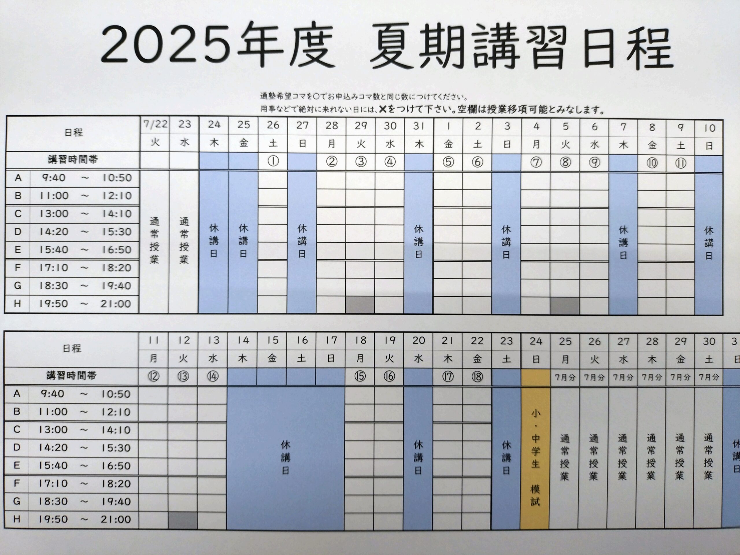 ★ 学習塾イノセント 夏期講習(北野町教室)