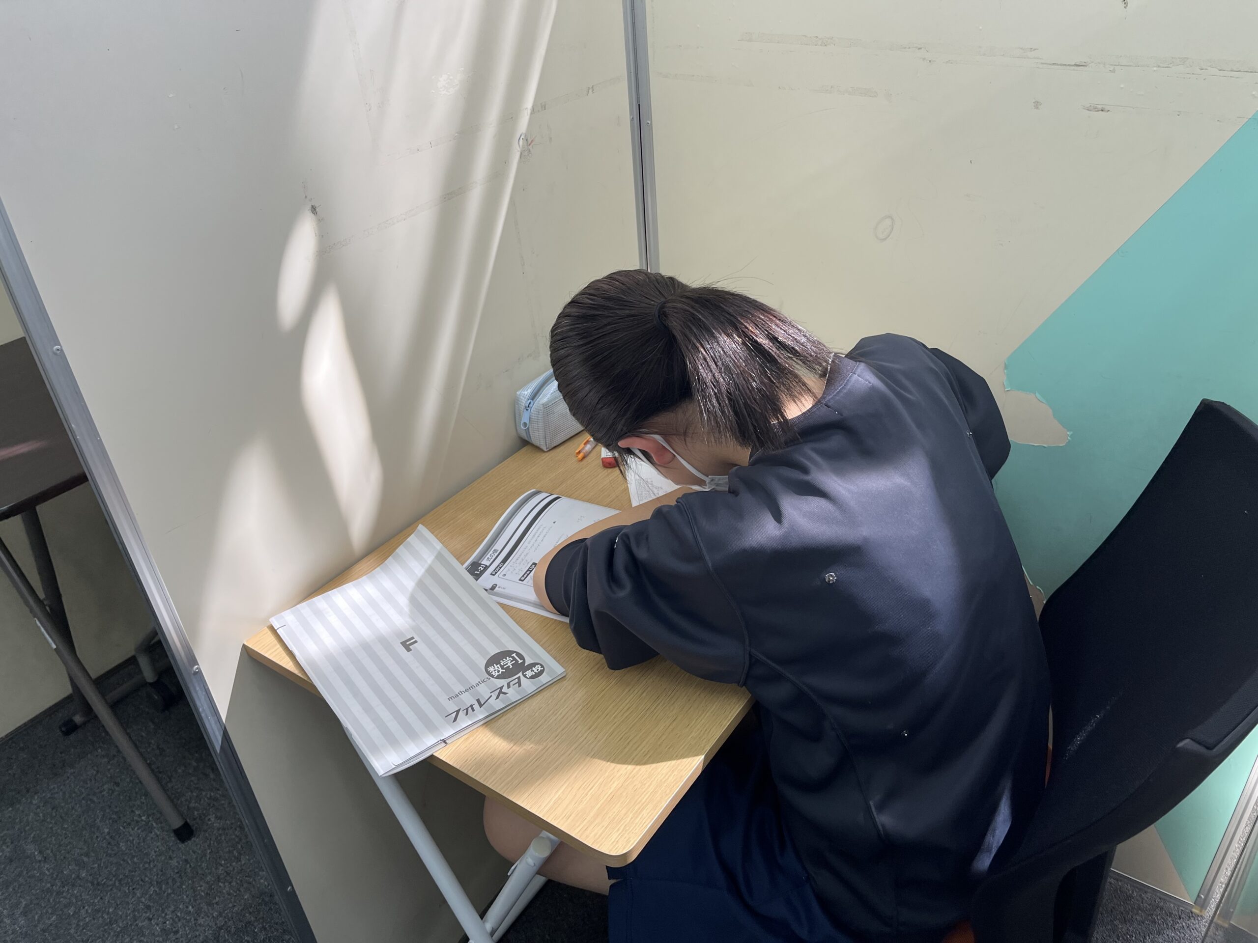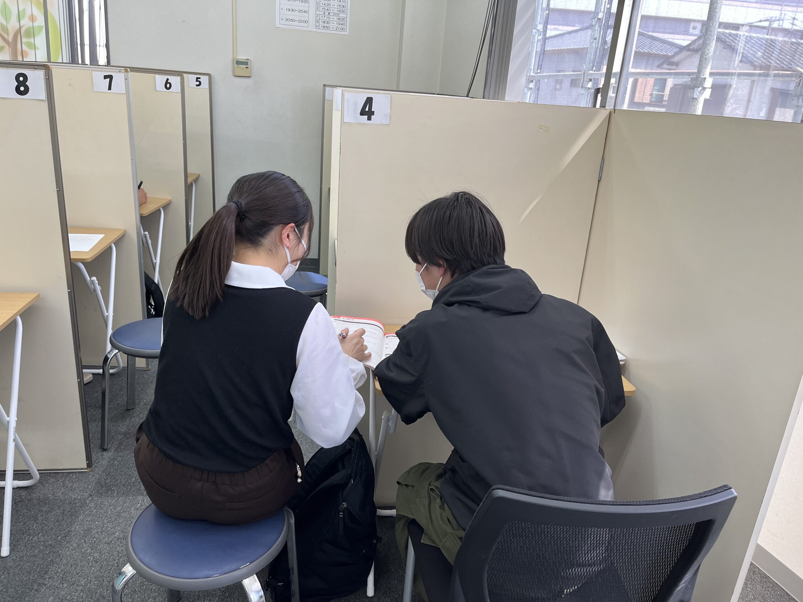 本塾は生徒さんの「学校の授業がわかった!!」を感じてもらえるために、予習型の個別指導を行っております。年間の授業実施日数や各生徒さんが目指す検定取得、期別講習での復習時間を組み込んで常に楽しく意識的な学習を行っております。学校によって2学期制・3学期制、部活動が盛んなシーズンなど生徒さん一人ひとりが抱える課題はまさに十人十色です。だからこそ、年間計画を立てて見通しのある授業計画を進めていくことで「定期考査+20点UP」の実現が出来ていると思います。また、受験も多様性を含んだ独自性のある受験が多くなっていることも加味して、集中できる学びの場を提供しております。今回の春期講習では学期最初の定期考査の「爆上げ宣言!!」をテーマに数学と英語に軸足を立てて楽しく勉強しております。