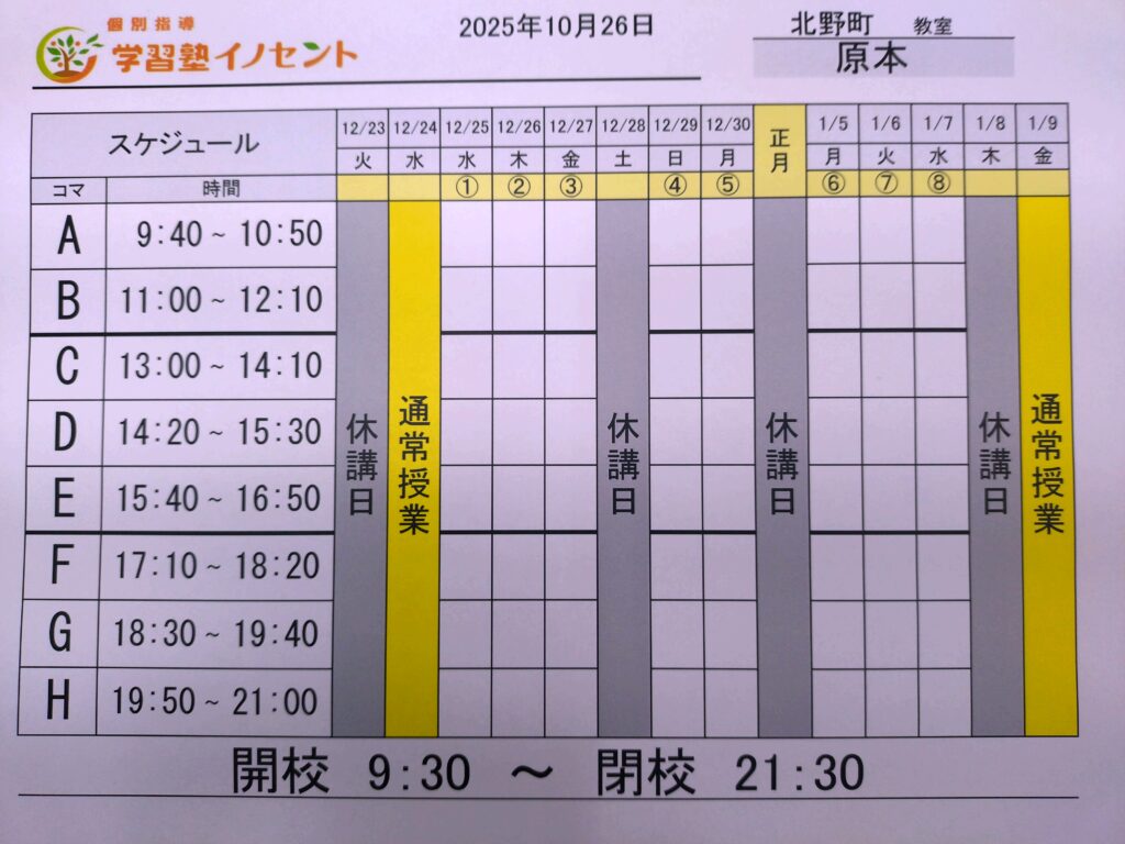 で、まずは冬期講習のお知らせです。