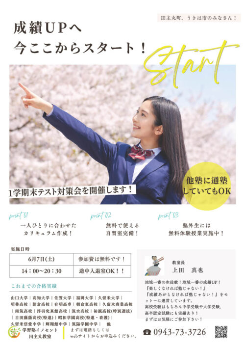 個別指導の学習塾イノセント田主丸教室の上田です。