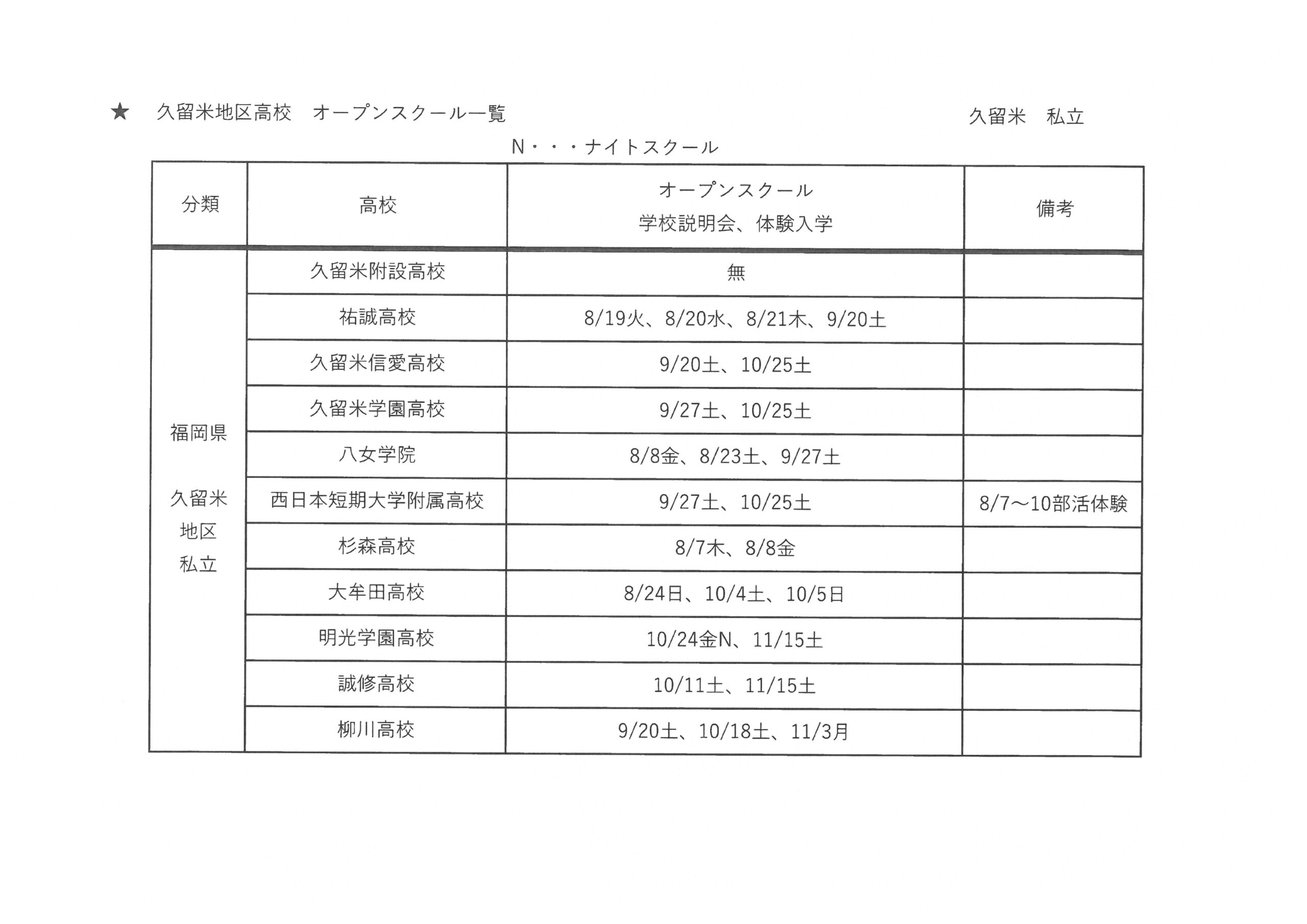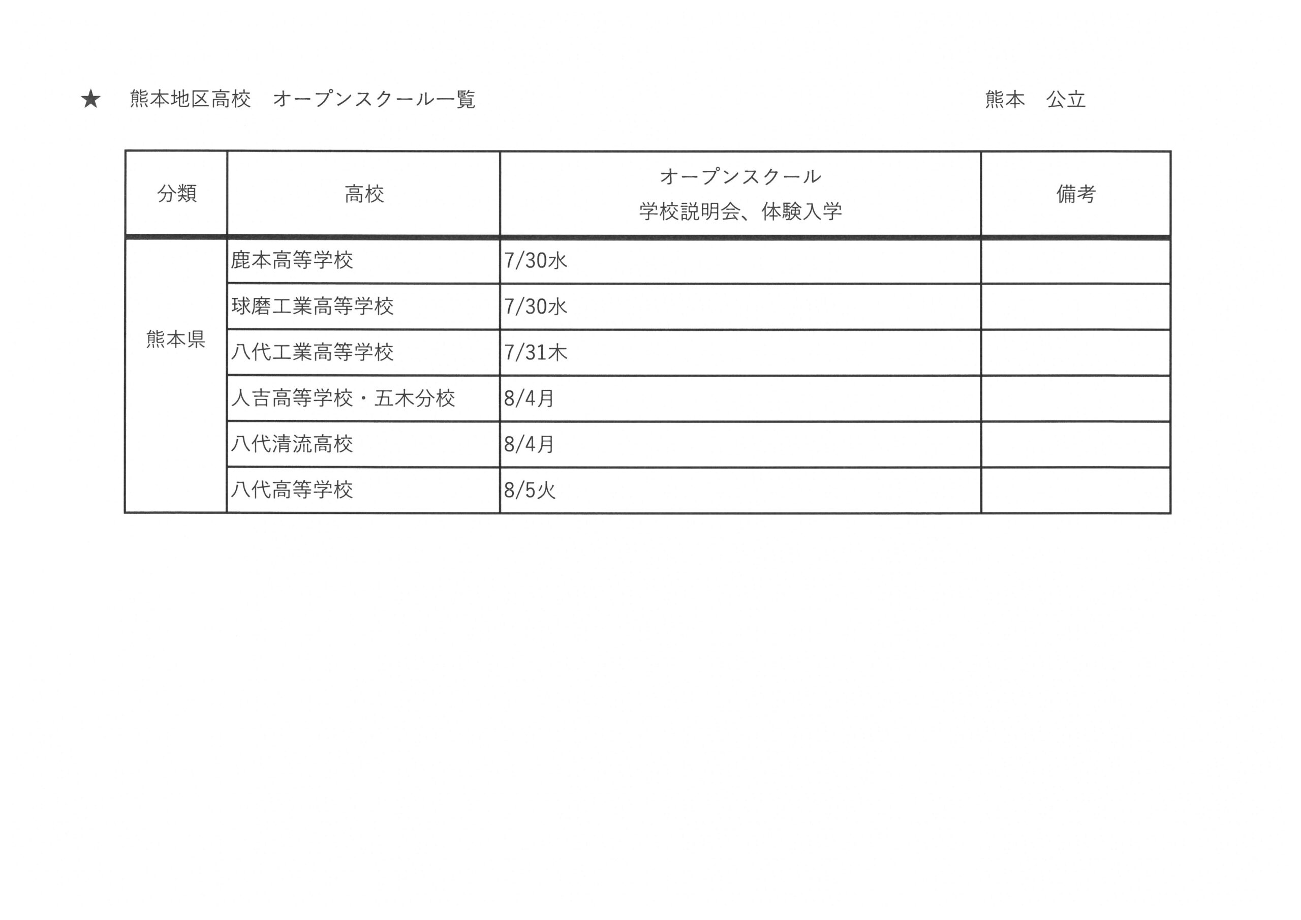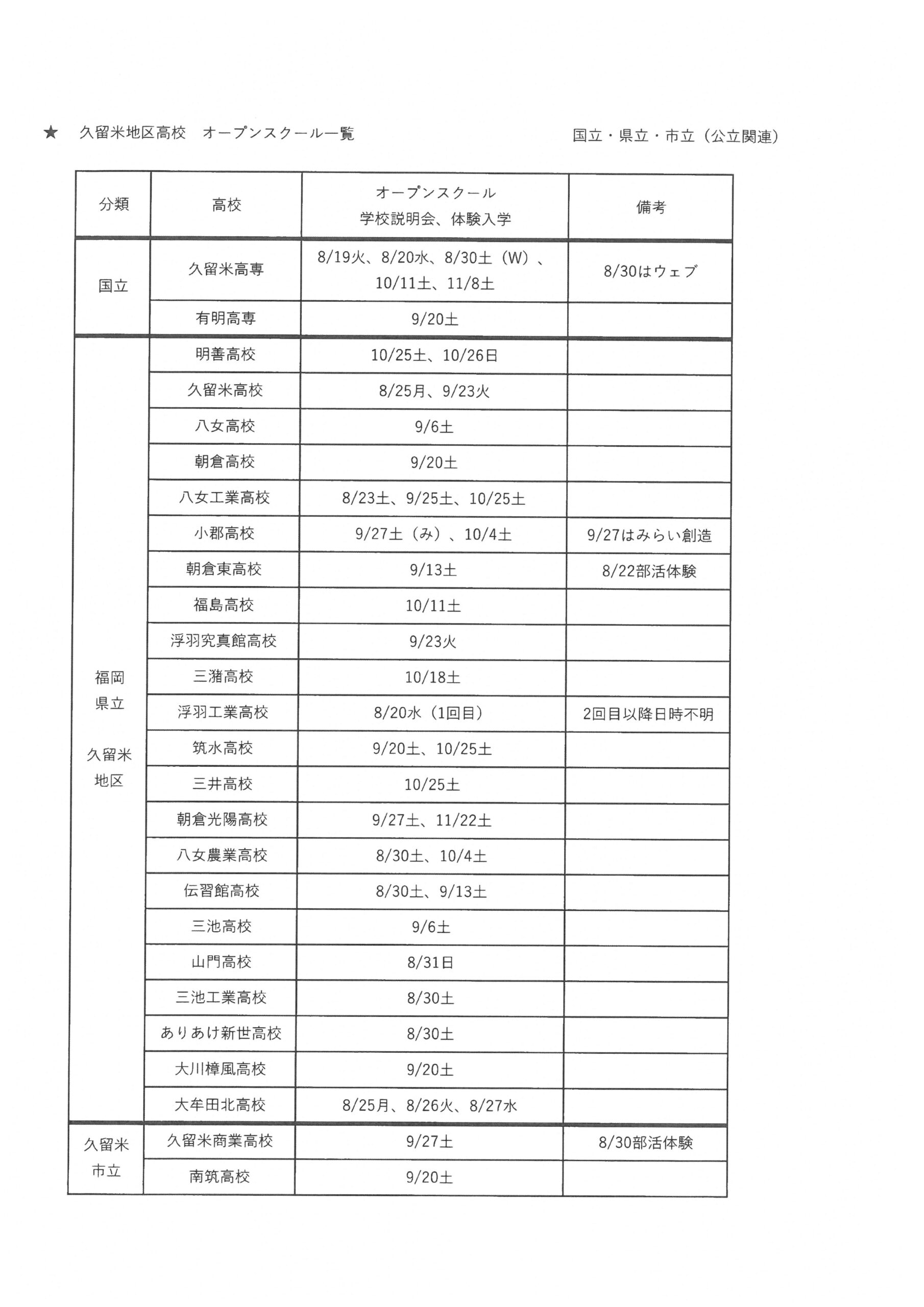 イノセントグループでは久留米地区、熊本地区の夏期オープンスクール、福岡近郊の大学のオープンキャンパスについて知り得る限りの情報を集めました。