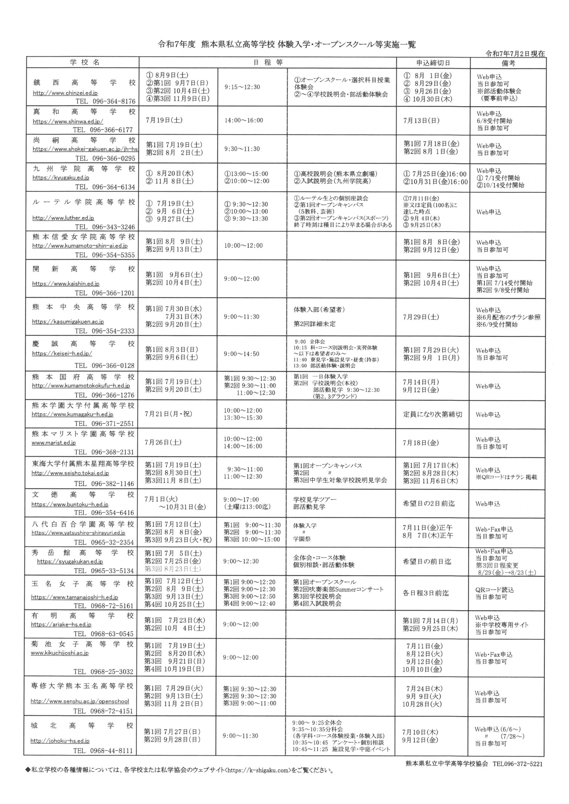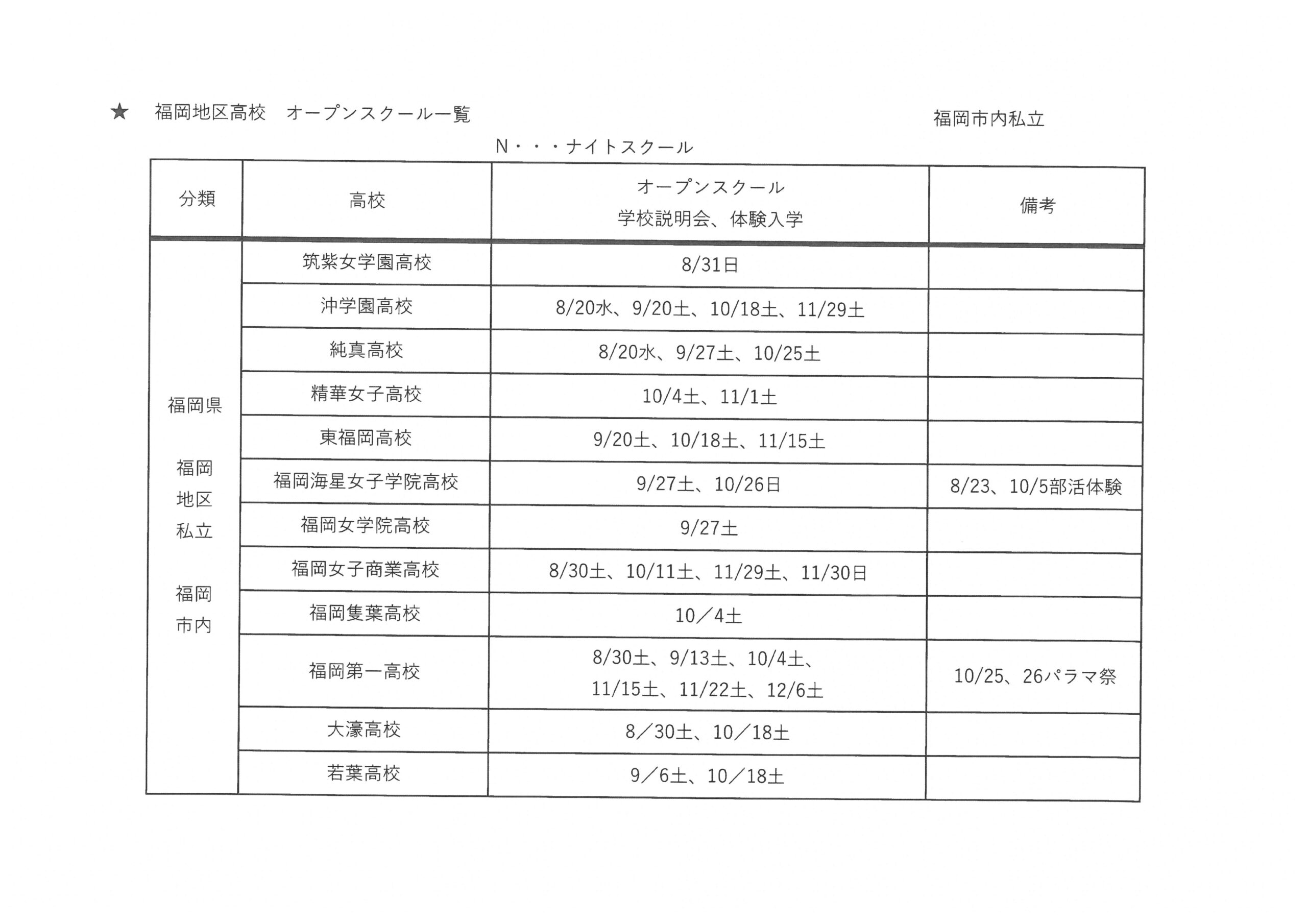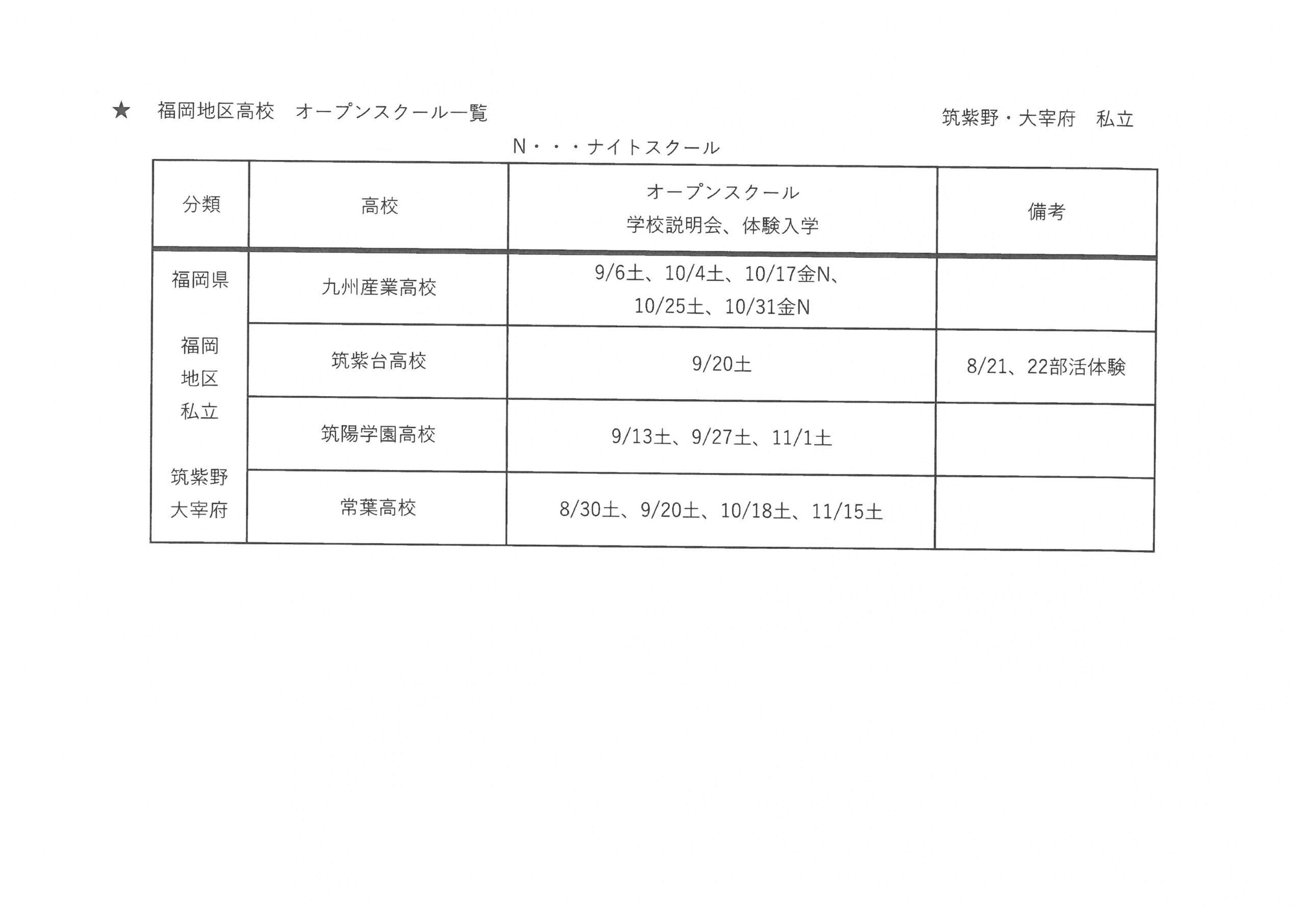 イノセントグループでは久留米地区、熊本地区の夏期オープンスクール、福岡近郊の大学のオープンキャンパスについて知り得る限りの情報を集めました。