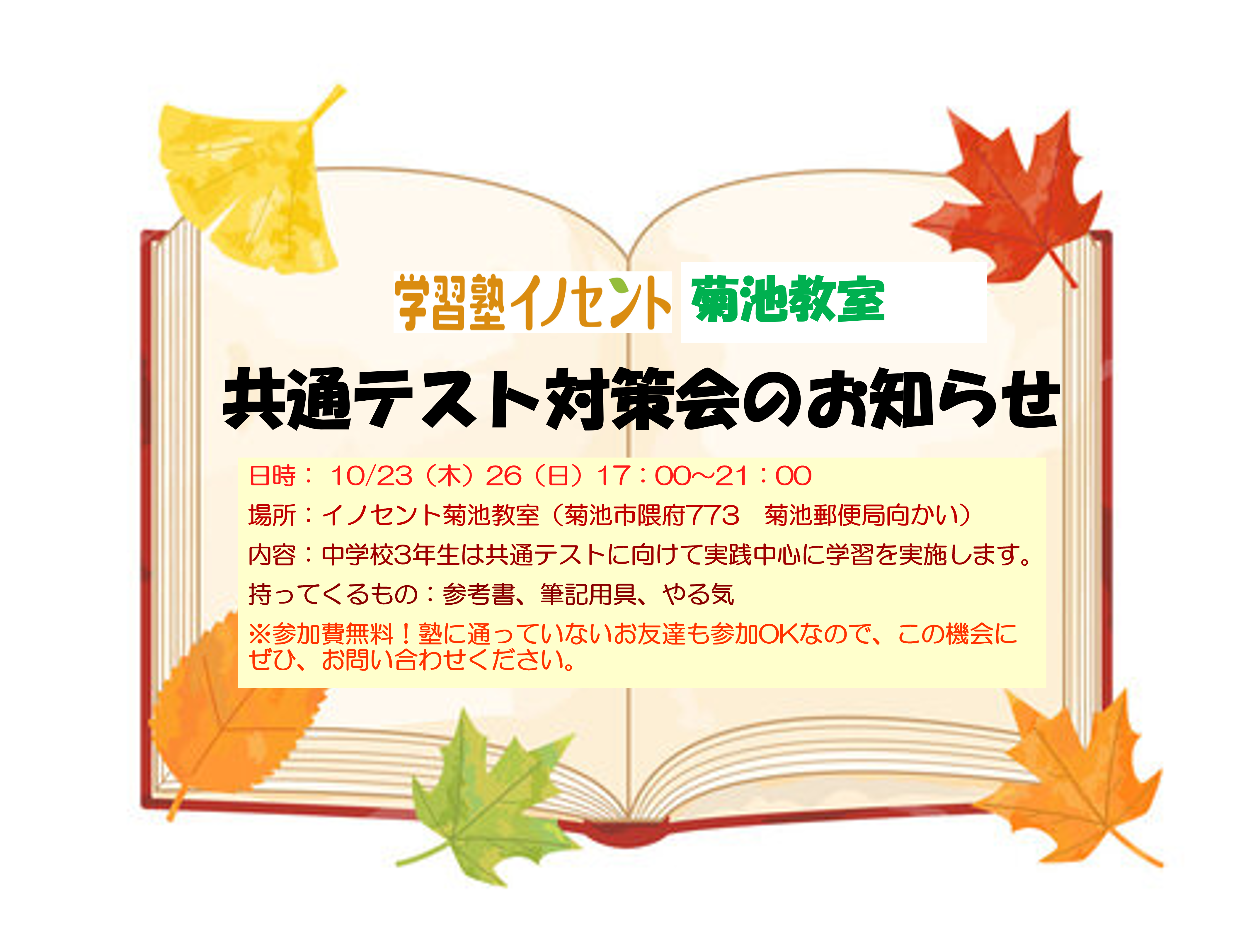 中学校3年生はいよいよ共通テストが迫ってまいりました。実力テストなどで分かっているとは思いますが、付け焼刃では通用しない難易度なので、「こんなハズでは・・・」とならぬよう、コツコツと学習を進めていきましょう。