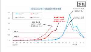菊池市では、クラスの半数が欠席で学級閉鎖になった学校もあり、インフルエンザが急増しています。