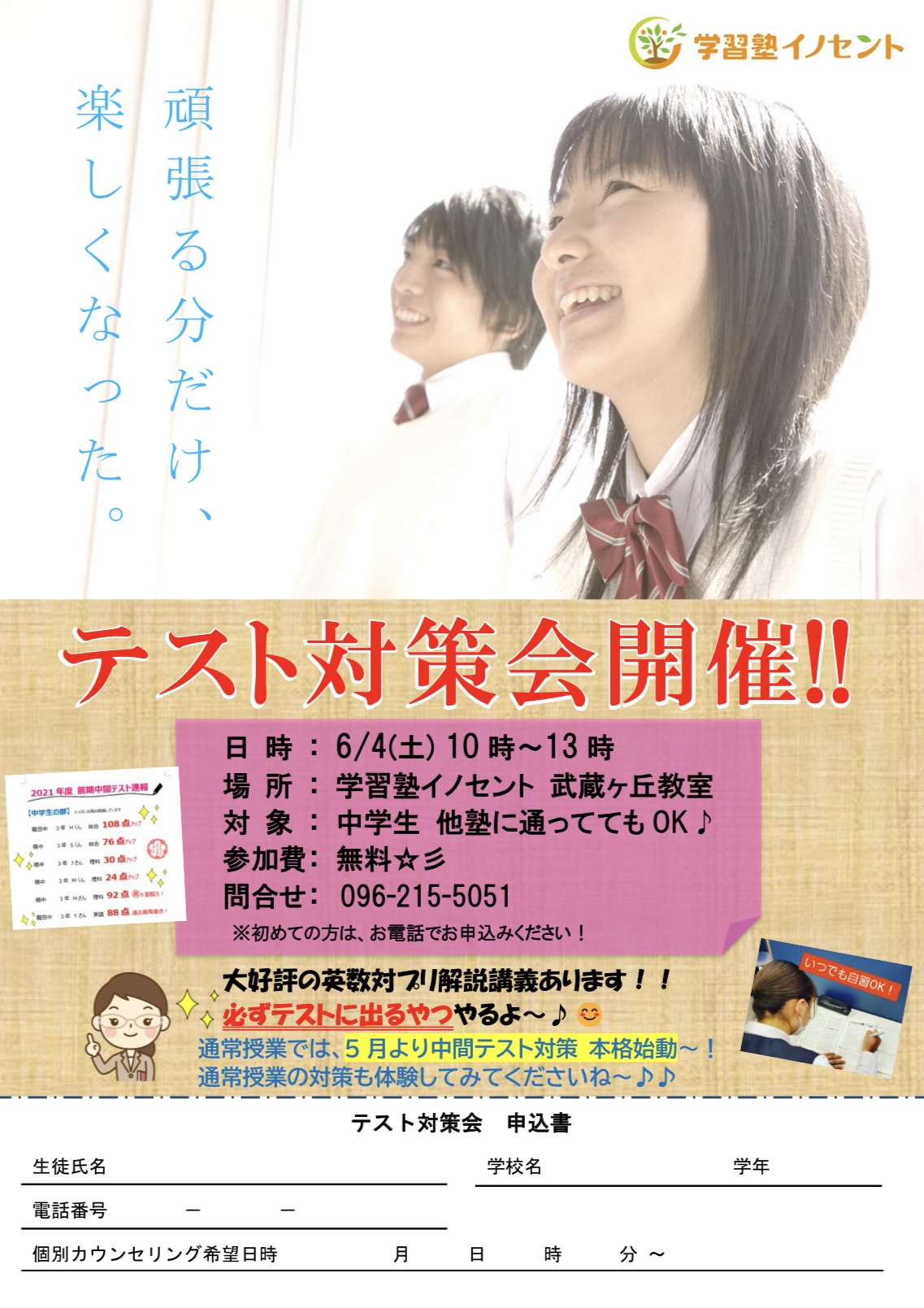 テストに向けて一緒に頑張りましょう!!