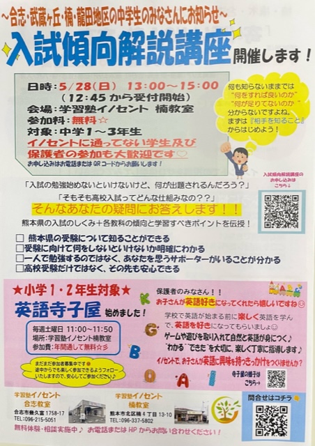 この説明会に参加して、まずは熊本県の入試について知って、対策していきましょう♪